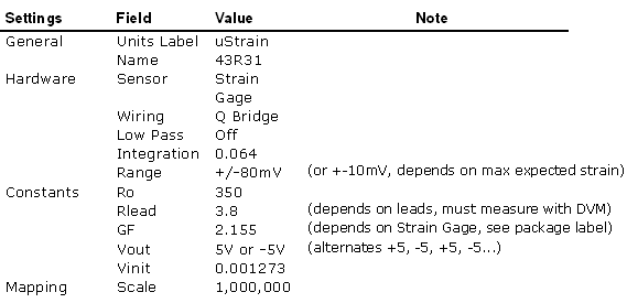 The above settings show a voltage range of ±80mV yet in many cases, a smaller voltage range such as ±10mV is adequate. If you increase the amount of strain on your gage and bump into a maximum returned value, then consider increasing the voltage range (e.g. move from ±10mV to ±20mV ) .