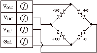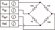 Measuring bending strain using a ½ bridge configuration involves wiring two strain gages as shown above or in figure f, applying a voltage across the bridge, and measuring the voltage across the two intermediate bridge nodes via a pair of instruNet Vin+ and Vin- input terminals. The excitation voltage