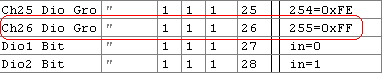 i100 boxes. This Ch26 is the same as Ch25 Digital I/0 Group, yet is high speed digitized as an output instead of input. The previous Channels 26..33 are shifted to positions 27..34. Output is different than input, so Ch25 In and Ch26 might reflect different values.