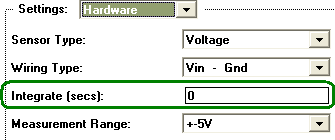 an incoming analog signal over a specified period of time. The Integrate field is set in the Hardware dialog, pictured below, for each channel, in units of seconds (e.g. 0.016 seconds). This is used to