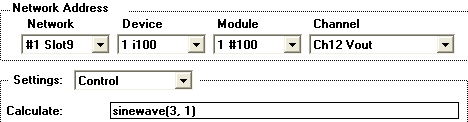 One can drive an output channel with its Control Calculate field, or with a line of code in the Before/After Control Script. The advantage of the Control Script is one can calculate an output value with multiple lines of script code (e.g. via "if ... then ... else"). To view/adjust the Control Script, select the Script page (i.e. click Script tab), and then select After Control Event or Before Control Event in the upper popup menus. The Control Script is disabled from executing when the Script page is selected, so it will not run while you are typing in it.