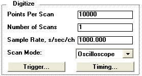 Also, when digitizing into RAM, we recommend that you digitize one Scan (set the Number Of Scans field to 1), and then use the Points Per Scan field to determine how long you digitize, as illustrated to the left.