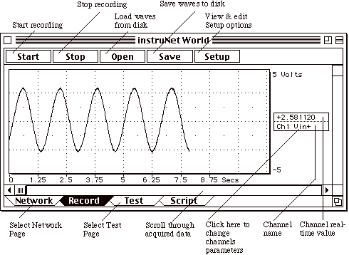 is chosen by pressing the Record tab at the base of the instruNet World window.