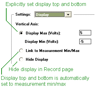 Set top and bottom of display to measurement min/max. For example, if you set up a thermocouple to measure 0 to 100°C, then the display will show 0 to 100.