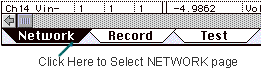 3. Select the Network Page. instruNet World offers several Pages: Record, Network, and Test. Click on the Network tab at the bottom of the window to select the Network page. The Network tab will inverse black to indicate the Network page is selected.