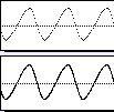 Notice how the wave in the top display contains fewer points, due to its reduced sample rate, as illustrated to the right.