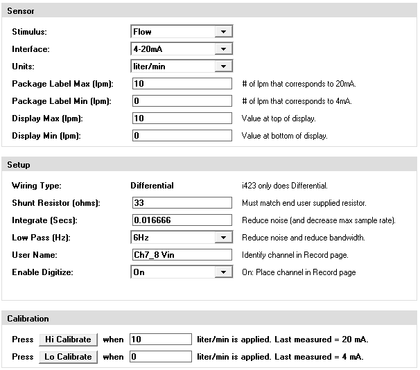 For example, a 0 to 5V sensor that measures 0 to 100lpm has a Sensor