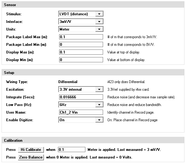 Select LVDT in the Stimulus menu and select the Interface