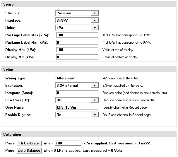 Sensor Package Label minimum of 0kPa and Sensor Package Label maximum of 100kPa (which would correspond to 3mV/V).