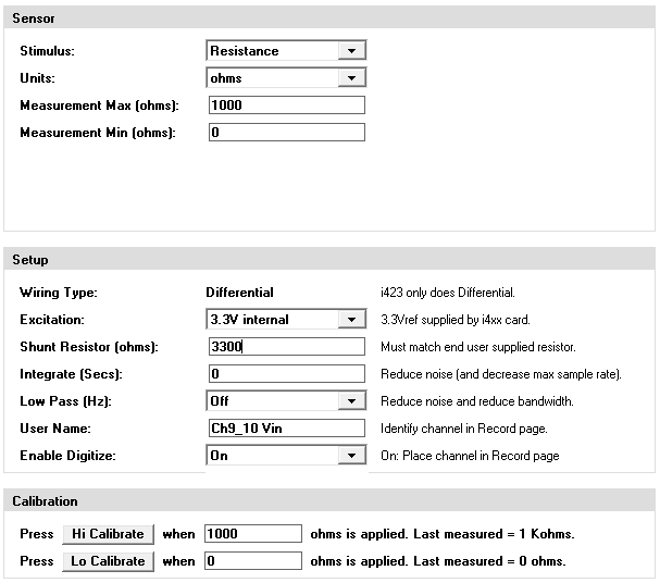 If working with an i423 card, adjust the analog Low Pass filter as needed (e.g. 6Hz or 4KHz).