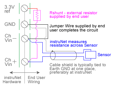 Measure voltage between each wiring diagram node and instruNet GND. Are they what you would expect given the circuit?